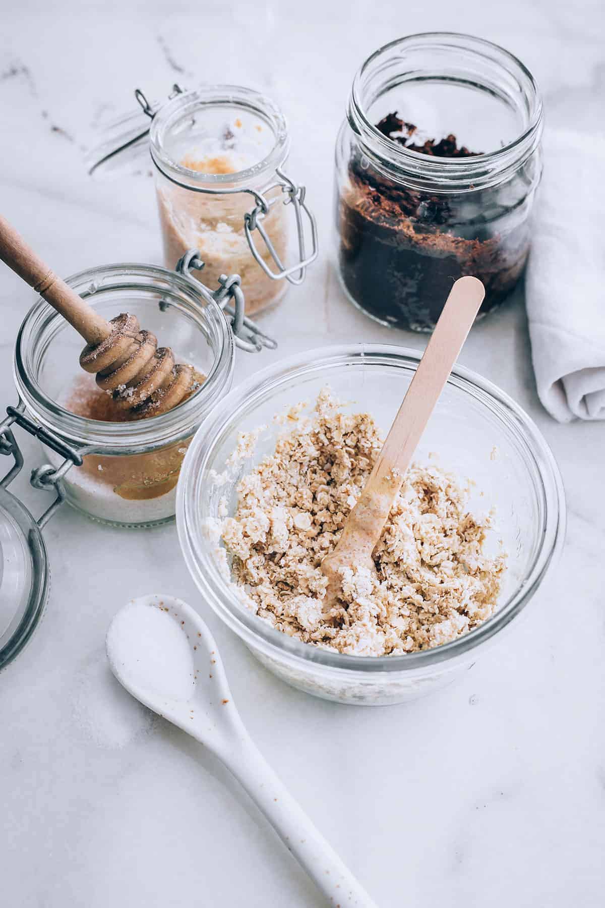 1. Смесете супена лъжица пчелен восък и супена лъжица течно масло (жожоба, бадемово, от гроздови семки, арганово). Смесете в буркан/купа и нагрейте на водна баня (сложете го/я в тенджера, пълна с гореща вода).