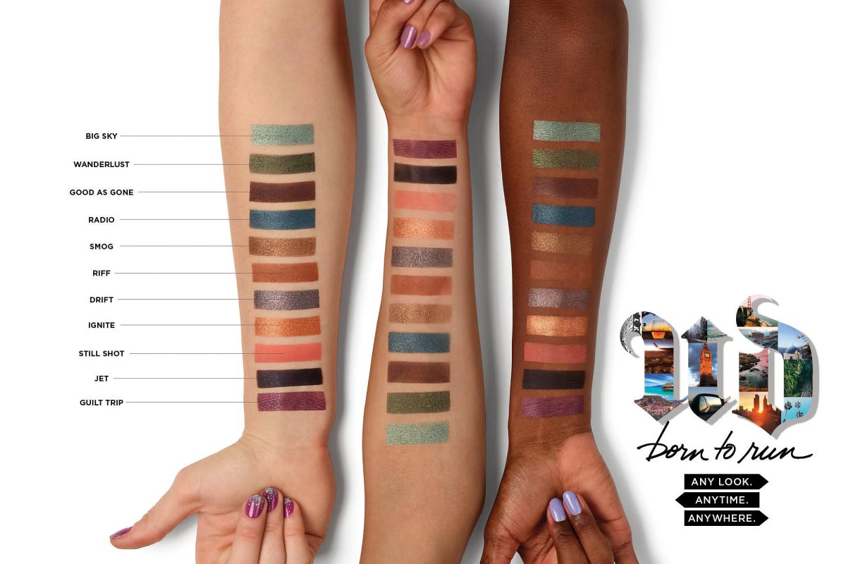 Urban Decay Born To Run палитрата има десет от самите най-популярни и разпознавани матови цветове и пет матови и блясъчни цветове. Тази палитра може да се използва за подходяща и модерна макияж база, както и за да придадете определена детайлност на гламурно макияж лице. Тук Urban Decay Born To Run Palette се изважда, докато преборите изразите и бързите цветове на заповедните територии на фьорди и океани.